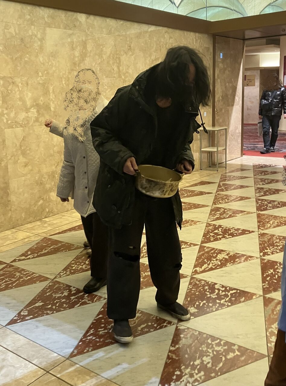 鍋とか缶の中には偽札が入っていて、帰っていくお客さんにお金を無心してました。